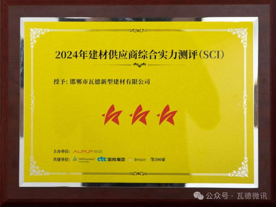 2024年4月8日,“5光同行 聚星閃爍”采筑聯(lián)合者大會在重慶順利召開,現(xiàn)場重磅發(fā)布2024年供應(yīng)商綜合指數(shù)SCI測評結(jié)果,獲全場數(shù)百位政府單位、采購商、供應(yīng)商、行業(yè)協(xié)會、領(lǐng)域?qū)<业赛c(diǎn)贊認(rèn)可。 瓦德新材在本次SCI綜合測評中獲評“三星供應(yīng)商”。本次SCI測評共有2600余家參評單位,其中僅197家