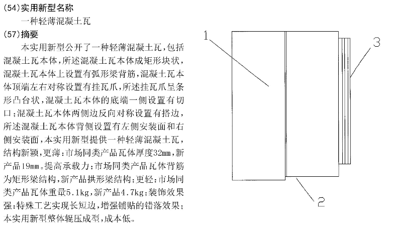 5.根據(jù)權(quán)利要求1所述的輕薄混凝土瓦,其特征在于,所述左側(cè)安裝面和右側(cè)安裝面底部混凝土瓦本體上對稱設置有弧形凹槽。