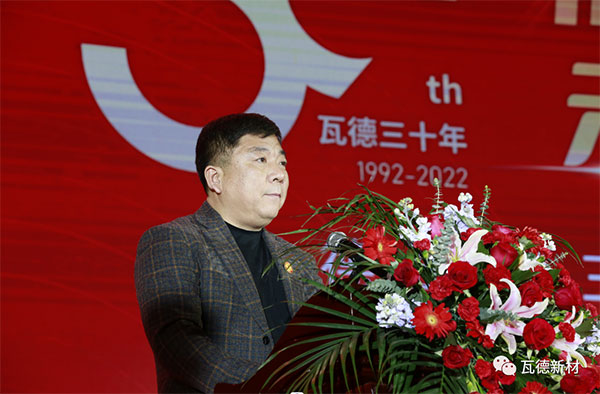 董事長謝富強(qiáng)首先講話,深情感謝各方賓朋。他簡要回顧30年風(fēng)雨歷程。一個十幾人的小作坊,在艱苦條件下,依靠團(tuán)結(jié)奮斗的精神,誠信經(jīng)營的理念,不斷創(chuàng)新的勇氣,由小到大,由弱到強(qiáng),由地面到門窗再到屋面,無論市場如何變遷,始終堅(jiān)持不懈地打造自已品牌的堅(jiān)強(qiáng)信念。將一支半手工作業(yè)的生產(chǎn)線打造成如今高端智能國際化的生產(chǎn)力量。實(shí)現(xiàn)了“瓦冠神州,德行天下”原初的奮斗目標(biāo),并將它確立為瓦德人躬身踐行的核心價值和企業(yè)永遠(yuǎn)的座右銘。