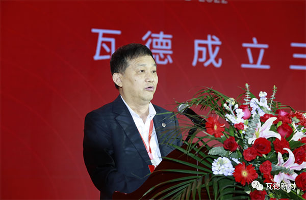 瓦德集團(tuán)長期合作方,中國防水協(xié)會瓦屋面技術(shù)分會秘書長肖軍先生,在慶典中致詞說:三十而立,瓦德一直深耕建材領(lǐng)域,技術(shù)進(jìn)步,質(zhì)量穩(wěn)定,全國布局,現(xiàn)如今已經(jīng)成為中國水泥瓦行業(yè)的領(lǐng)跑企業(yè)和一面鮮明的旗幟。瓦德專注水泥瓦二十四年,在中國制造業(yè)的中小企業(yè)中難能可貴。大國制造,實(shí)業(yè)興邦,具備專精特新的瓦德新材已經(jīng)站在新機(jī)遇的門口。回顧過去幾年,由于房地產(chǎn)的調(diào)整周期和疫情影響,整個建筑行業(yè)和瓦行業(yè)都受到了不小的沖擊,一些企業(yè)經(jīng)營艱難,減產(chǎn),關(guān)閉,信心缺失。但讓我欽佩的是謝董和瓦德人激情依舊,自信滿滿,發(fā)奮圖強(qiáng),逆風(fēng)飛揚(yáng)。