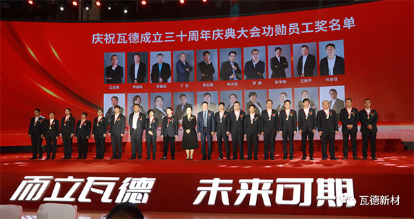 來自于全國各地的經(jīng)銷商、代理商、行業(yè)協(xié)會代表、親朋好友以及企業(yè)員工500余人齊聚一堂,共享瓦德新材集團(tuán)30年的慶典盛況。
