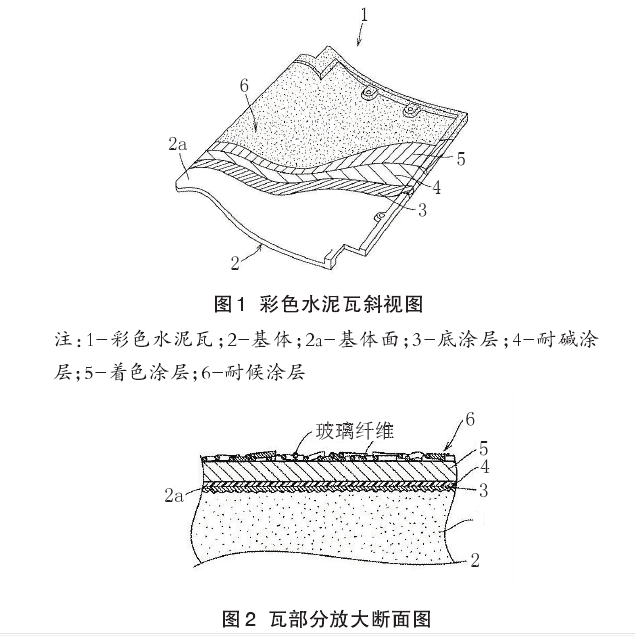 彩色水泥瓦能否經(jīng)久耐用,關(guān)鍵取決于耐候性指標(biāo)。推出該工藝的目的就在于提高彩色水泥瓦的耐候性,以大幅延長其使用壽命。該制瓦工藝主要特征是在成形瓦坯表面涂以著色涂料,形成著色裝飾層,再在其上面涂以色彩同于或淡于著色涂料的含纖維材的耐候性涂料。這里耐候性是指彩色水泥瓦經(jīng)受外部空氣溫度變化、日光紫外線和風(fēng)雨的性能。著色裝飾涂層和耐候性涂層所用涂劑宜使用丙烯酸有機硅涂料、水性丙烯酸涂料等,以使用水性丙烯酸涂料為佳。所用纖維材料要求具有耐候性,宜使用玻璃纖維或碳纖維。玻璃纖維以使用耐堿纖維為佳。纖維材料在涂料中的配合量為5%~30%,最好7%~12%(按質(zhì)量計)。其配合量過少,無法充分確保耐候性;過多,不易在涂料中均勻分散,導(dǎo)致部分色彩不佳或色斑。此外,在有效保護著色裝飾涂層的同時,為了避免涂料用噴槍堵塞,纖維材最好使用直徑約在 30μm以上的微細(xì)圓柱形單絲,其長度以 30μm~200μm 為好?;想m以水泥為主要成分,亦可摻用石膏、水玻璃等。